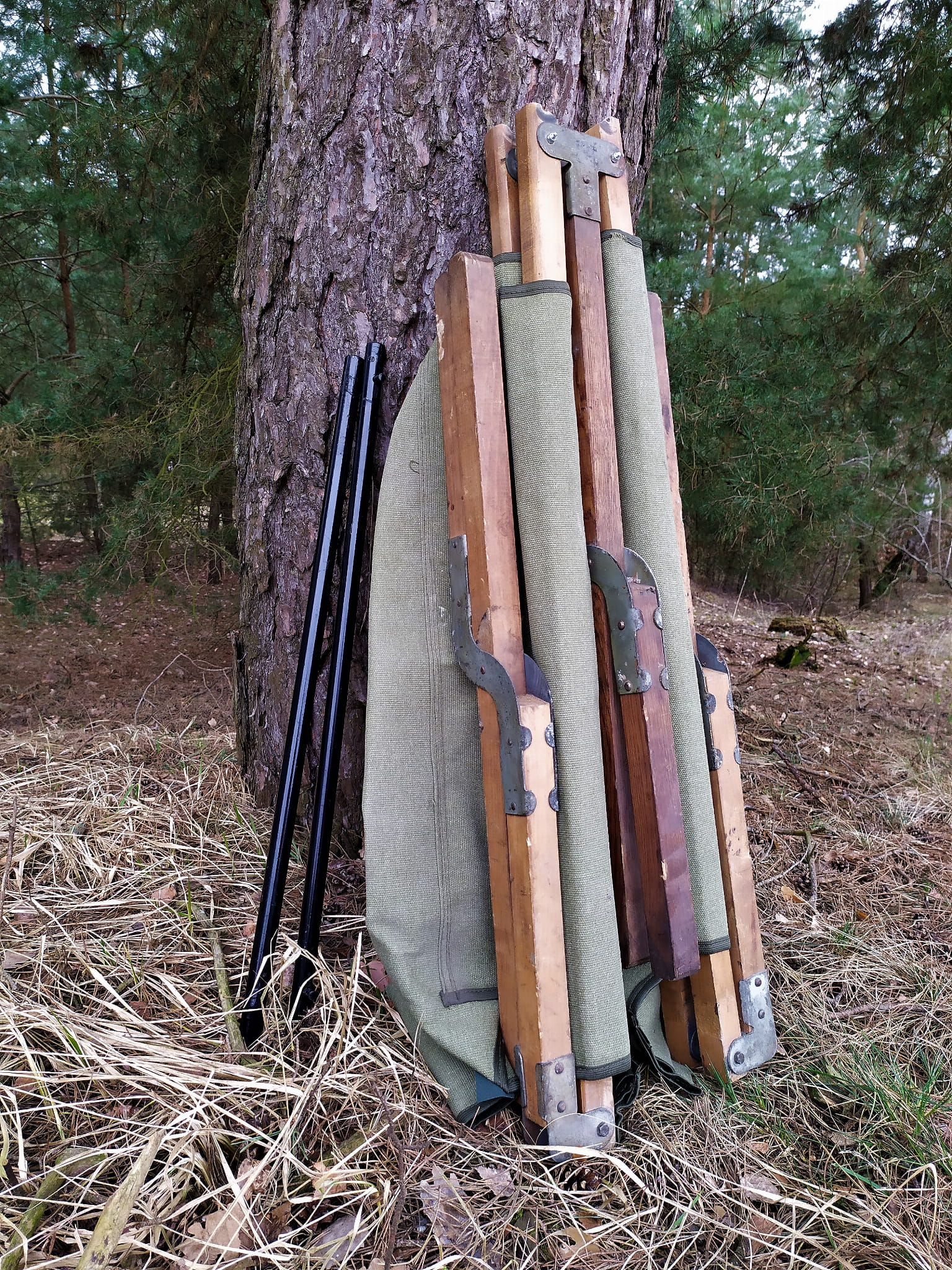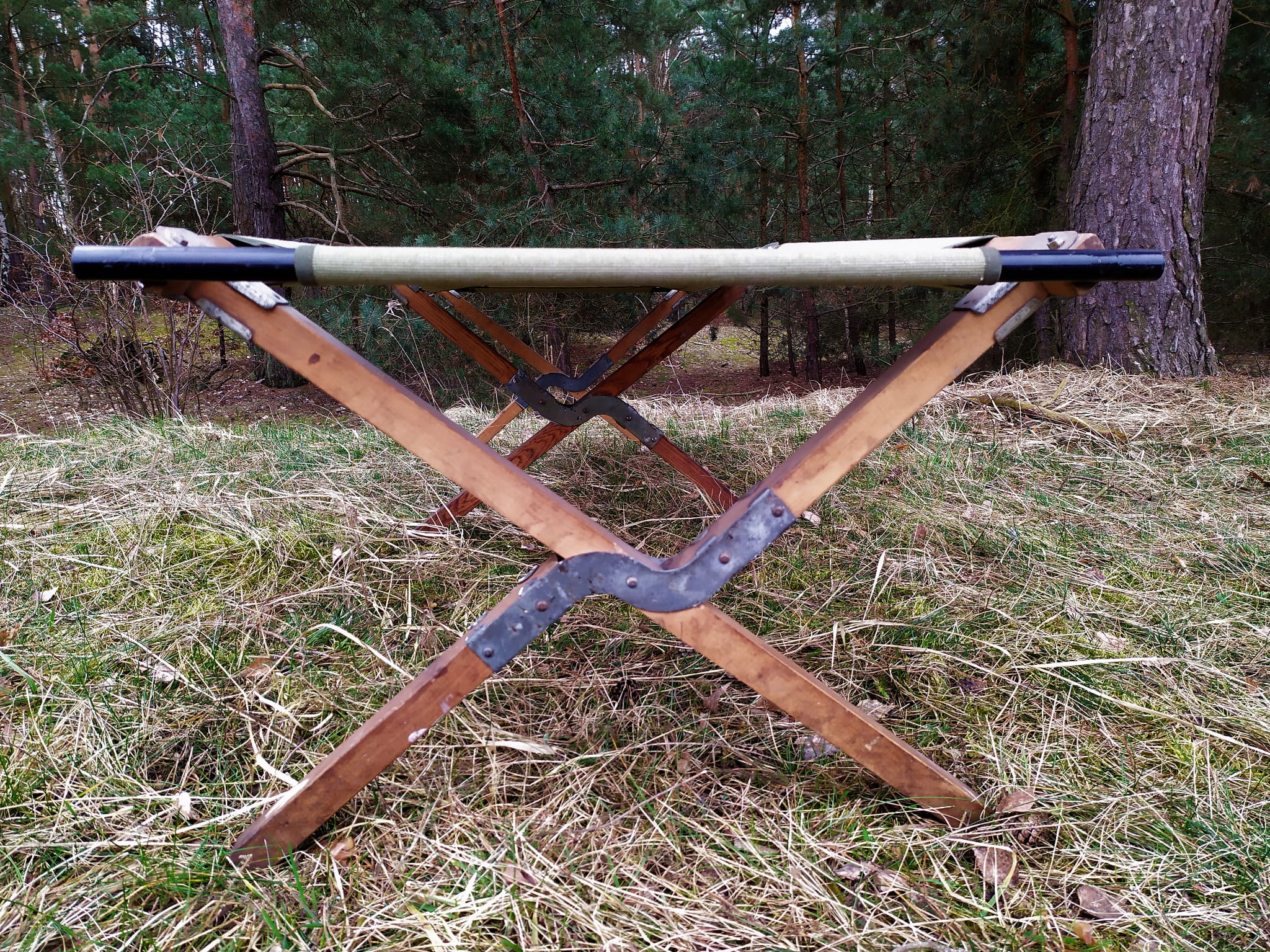 Kanadyjka łóżko polowe wojskowa po renowacji uż. drewniana